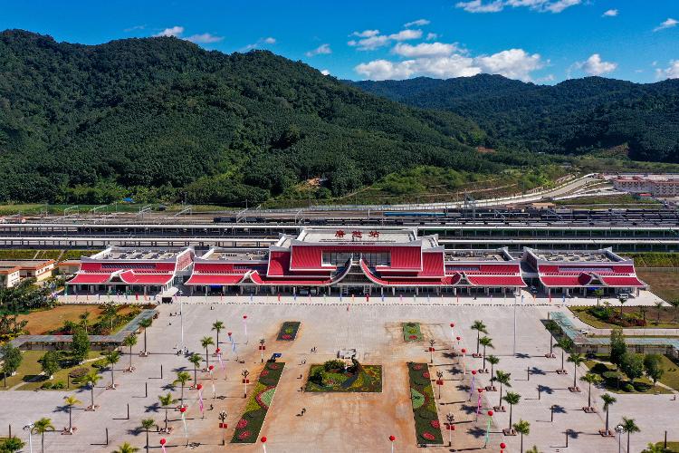 俯瞰中老铁路磨憨站。新华社记者 陈新波 摄